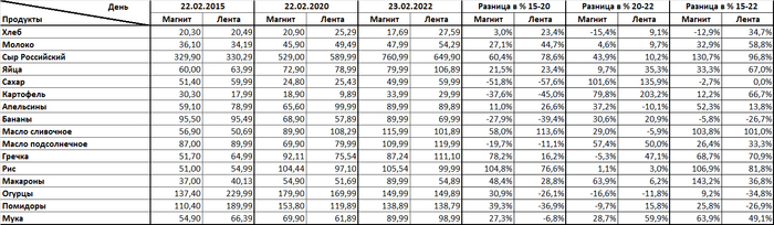 Наступил очередной февраль и я могу продолжить свою мелкую статистику. В связи с этим предлагаю Вашему вниманию сравнение цен тех же магазинов в 2015 году и в 2024 года (2020 и 2022 и прошлых постов оставлены для сравнения). К сожалению выборка в ней мала и нет мяса, рыбы и много прочего, но уж как пошло.