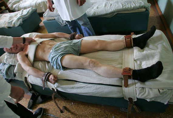 1. Привязывание жесткое (до онемения конечностей, до пролежней; в особенных случаях привязывают так, чтобы веревки впивались в тело до крови. В таком состоянии могут продержать неделю).