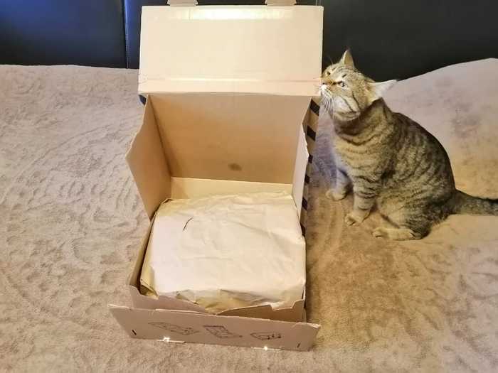 Но вот посылка получена, котоинспекция пройдена и можно открывать.
