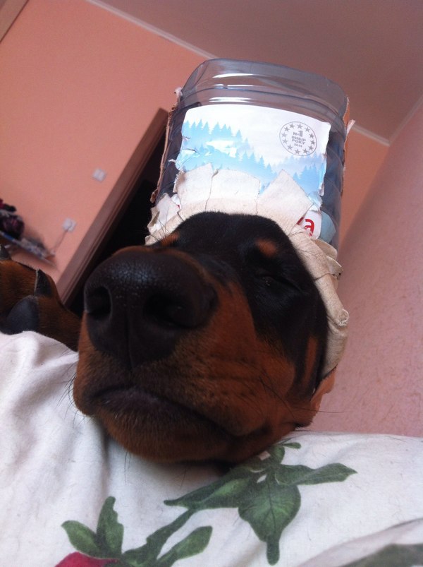 Первая поездка к врачу, нахлебалась моющего с ведра. Эрика явно недовольна результатом поездки)