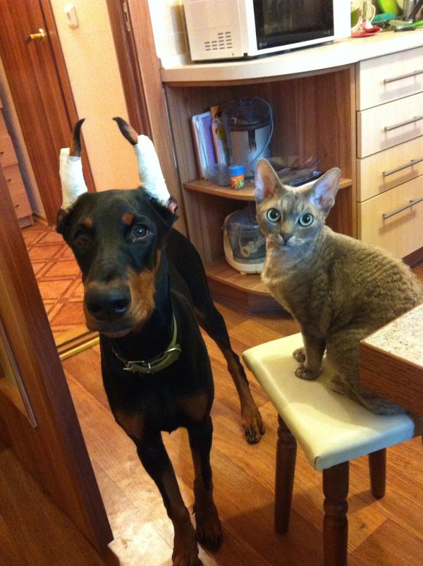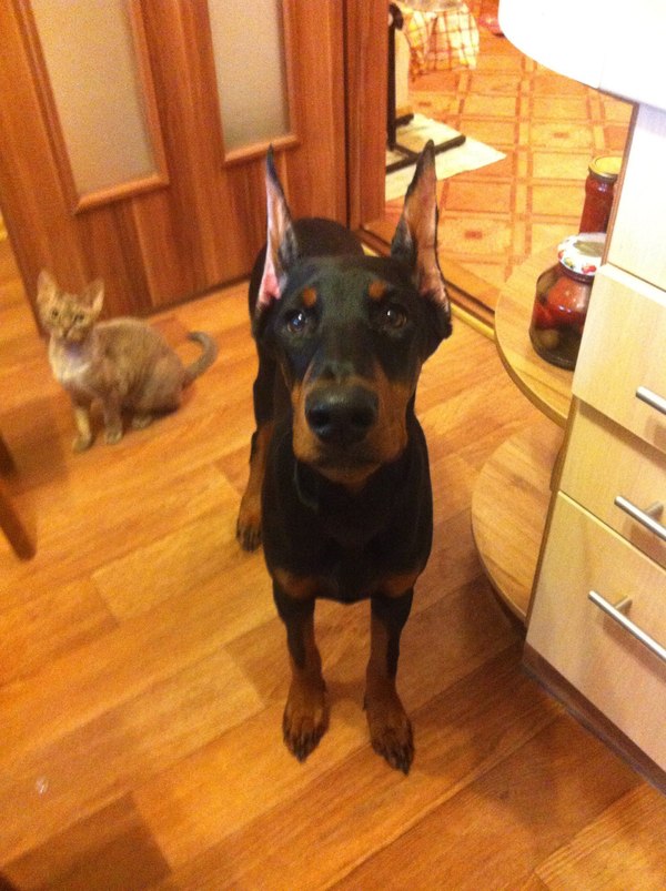 В поддержку тем о домашних любимцах. Кот Локи и добер Заюшка-Эрика, она же Кудабля, Фубля, Комнебля.