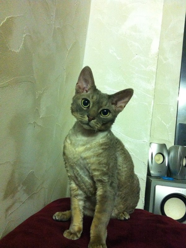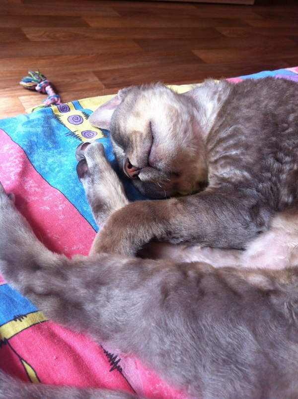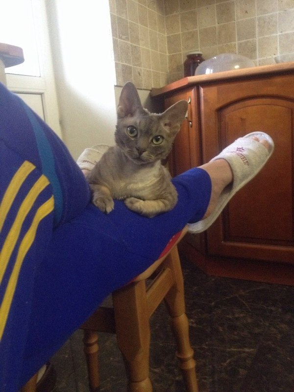 Ну и напоследок немного котика. Мы его называем Шерсятным П*дарасом, потому что этот комок кудрявой шерсти любит часов так в 4-5 утра пойти на кухню, открыть шкаф с кастрюлями и громыхать ими, при этом громко мяукая. Или прибежать посреди ночи, больно-больно грызануть за нос и свалить. А вообще, его зовут Локи, в честь того самого Локи, скандинавского. Как говорится, как корабль назовешь... Купили мы его 2 года назад у народных разведенцев "чтобподешевле", потому что на руках была одна сумма, а больше терпеть я не хотела. Нам его передали в коробке ночным поездом (обещали привезти в переноске и на ночь выпустить гулять свободно по купе). В 6 месяцев кот выглядел на 3. Зубы молочные все на месте, худой, зачуханый, страшный. В первый же день к врачу отправились. И в итоге лечили его еще 3,5 месяца и денег выложили сверху столько же, сколько бы заплатили за нормального кота из питомника. Не ходите, люди, к разведенцам.