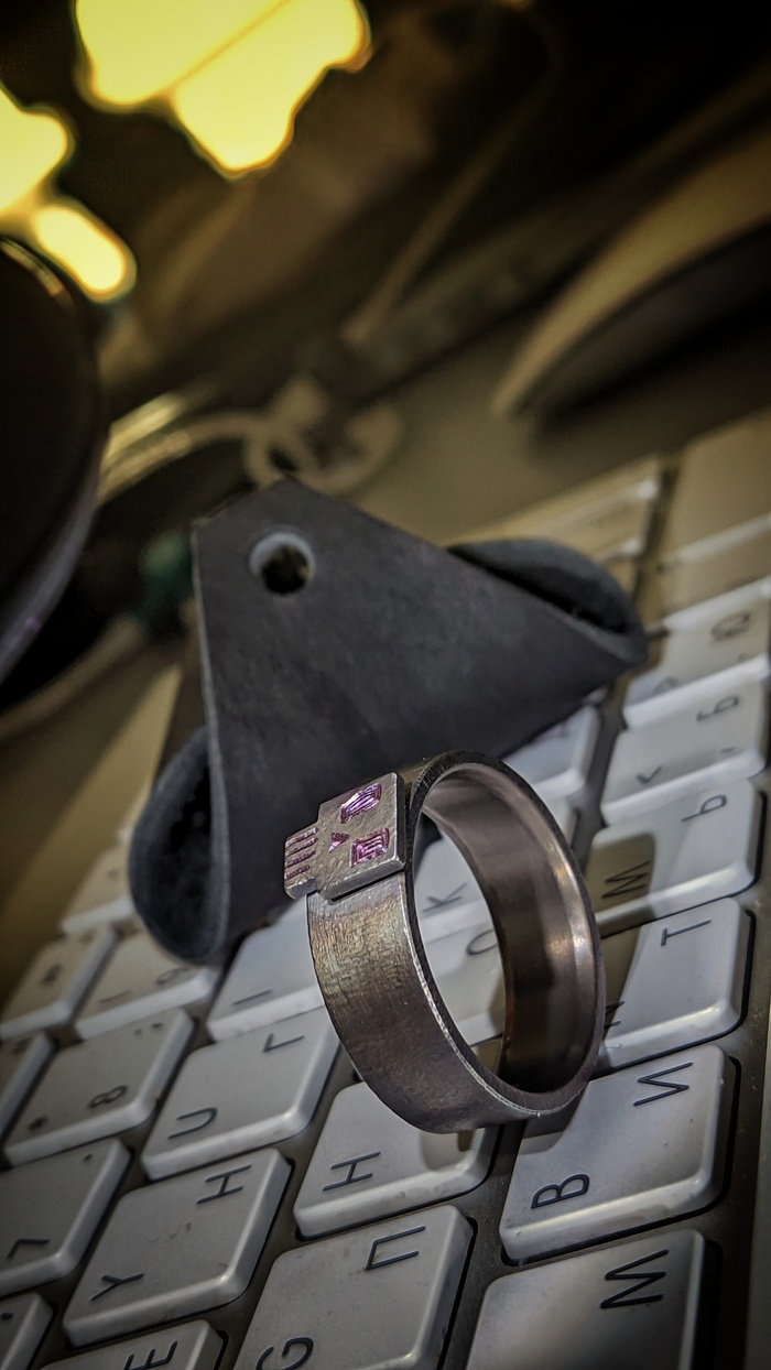 В одном из постов, а именно в этом, я искал мастера, готового воплотить в чём-нибудь твёрдом бумажное кольцо, которое мне на ДР подарила дочь. Фото бумажного кольца прилагаю: