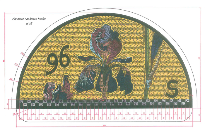 На первом этапе мы провели все необходимые реставрационные обследования. Были выполнены фотофиксация и снятие всех размеров мозаики. Также мы взяли образцы смальты, чтобы на нашем производстве изготовить идентичную авторской по цвету, тону и фактуре.