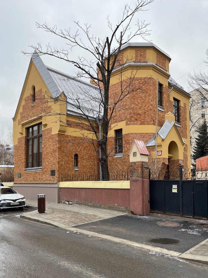 Особняк Федора Осиповича Шехтеля расположен в Москве, в Ермолаевском переулке, д. 28, стр. 1.