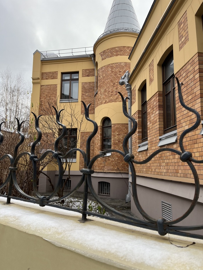 Ограда вокруг особняка выполнена в лёгкой, «воздушной» манере, что было характерно для работ Шехтеля. Это решение позволяет зрителям с улицы лучше видеть здание и оценивать его архитектурную композицию.