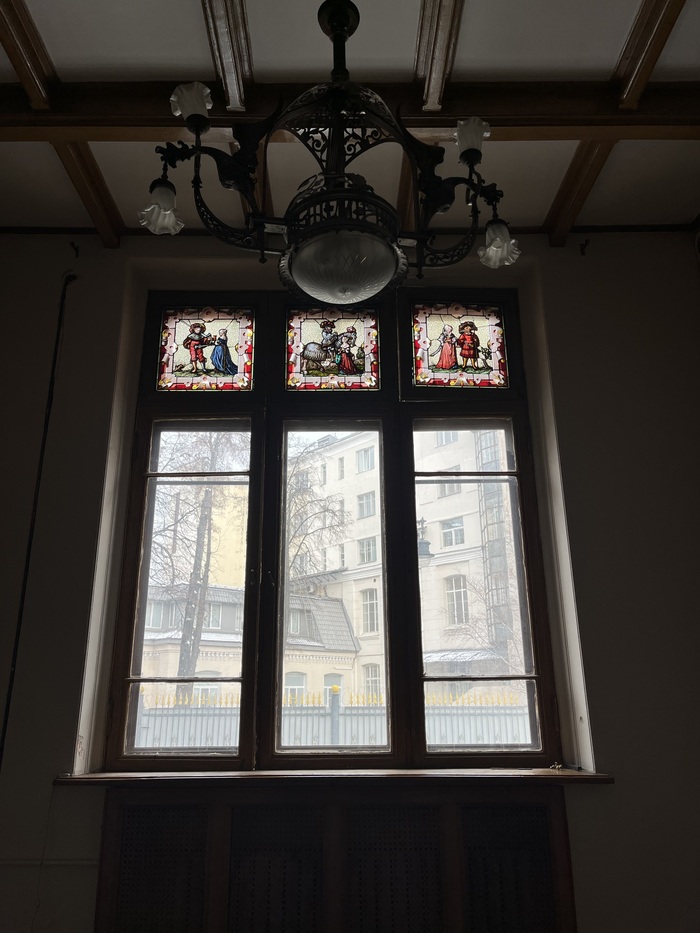 Первый день конференции состоялся в Научно-исследовательском музее при Российской академии художеств (НИИМ РАХ). В рамках мероприятия я представила доклад: «Реставрация мозаичного панно В. А. Фролова над парадным входом в особняке Ф. О. Шехтеля»