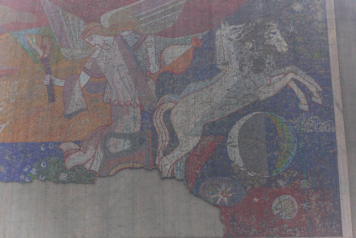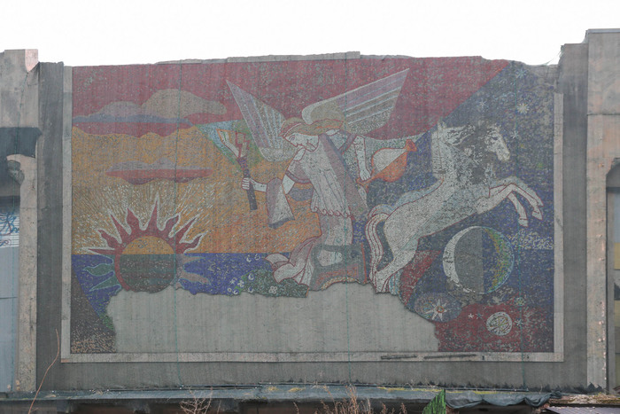 Кинотеатр «Аврора». Мозаика с изображением богини Авроры в колеснице, 2012 г. Фото взято из интернета.
