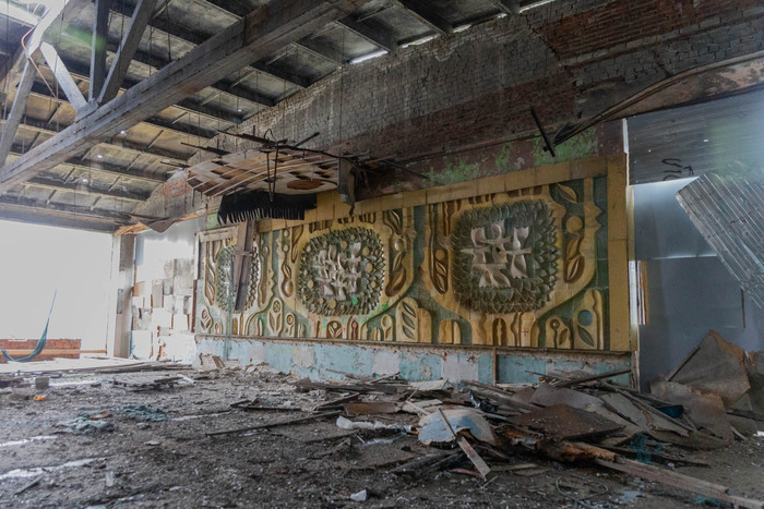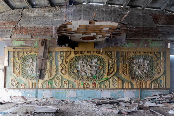 Однако сейчас «Аврора» – это руины, представляющие опасность для горожан. Вместе с разрушением здания уходит и культурное наследие – монументальная мозаика на фасаде и уникальное керамическое панно внутри.