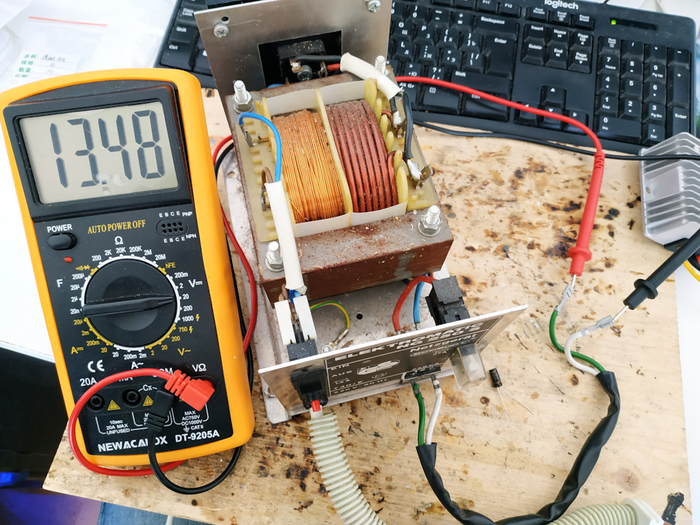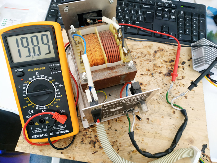 Разбираем и замеряем переменное напряжение на вторичной обмотке транса: