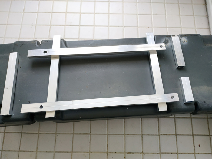 Под гайки подложил не только увеличенные шайбы, но и алюминиевые профили: под фанерой может быть как силовой брус, так и пенопласт. Шайбы рано или поздно промнут фанеру и пенопласт, если ездить с полным баком, и трясти его. Алюминиевые профили распределяют нагрузку по поверхности.