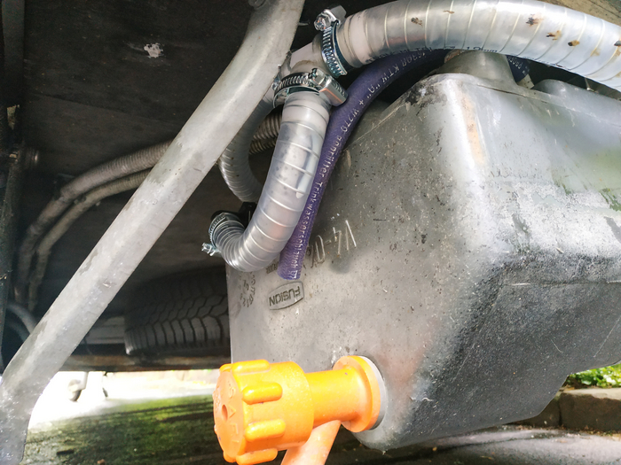 Бак в тумбе под мойкой Жилой прицеп Adria. Водоснабжение. Отвод воды и канистра с питьевой водой, конечно, хорош, но: