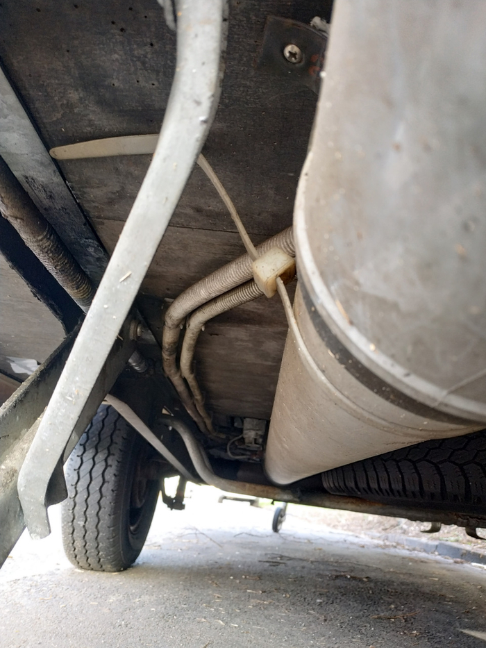 2. Заменил шланг от баллона до газовой трубки, которая уходит под дно прицепа.