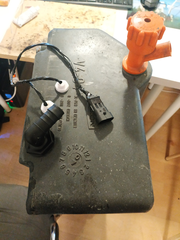 Далее в планах — подключение датчиков уровня. И переделка подвеса бака на "чуть повыше" (не нравится мне, как оно выглядит).