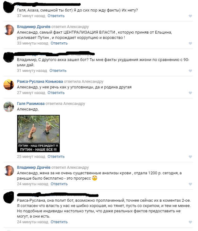 С недавних пор у меня появилось непонятное ощущение после "пробега" по новостям. Гадал, гадал, откуда это, и вдруг осенило. Кол-во негативных новостей про Россию, увеличивается чуть ли не в геометрической прогрессии, самые яркие примеры "рутений" и "антидопинг" (очень похоже на дискредитацию нынешней власти), да и срачи в коментах стали гораздо горячее, особенно говны летят в адрес власти. А дело случаем не в предстоящих выборах? Я не считаю нынешнею власть чем-то хорошим (в ЕР немало ублюдков, если не сказать больше), но даже так, альтернативы ВВП не вижу, остальные либо клоуны (Жириновский, говорит разумные вещи, но... время от времени), либо "упыри" (это про навалившего и собачак), да и помню я 2000г когда Путин только стал президентом, я такого не хочу от слова совсем. Я превращаюсь в кремлебота, или наоборот ко мне пришли разум и понимание реальности?