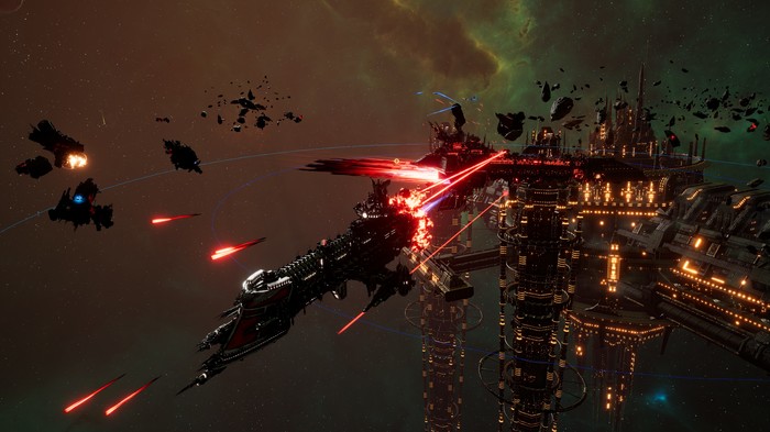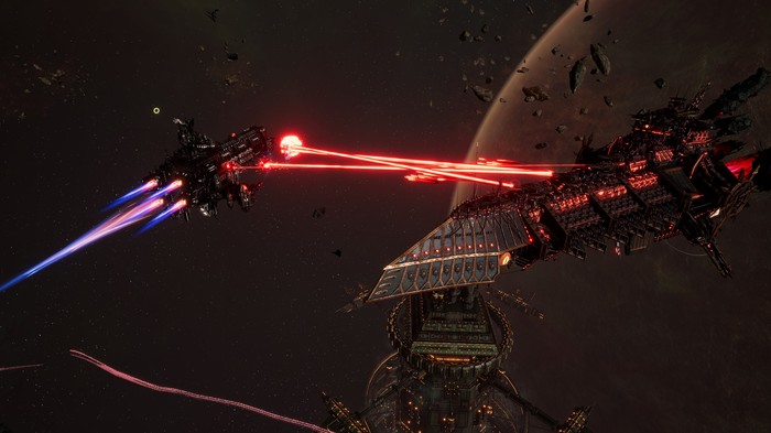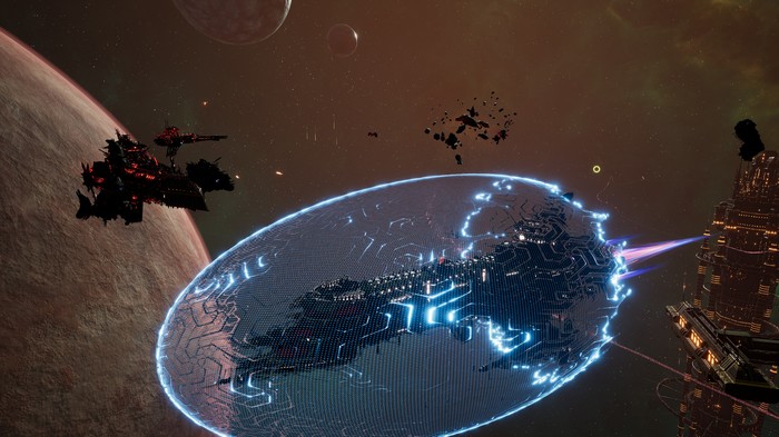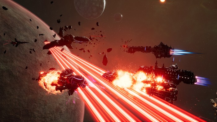 Планетоубийца наносит сокрушительный удар по флоту противника, в то время как Мстительный Дух отбивается от эскадрилий бомбардировщиков противника