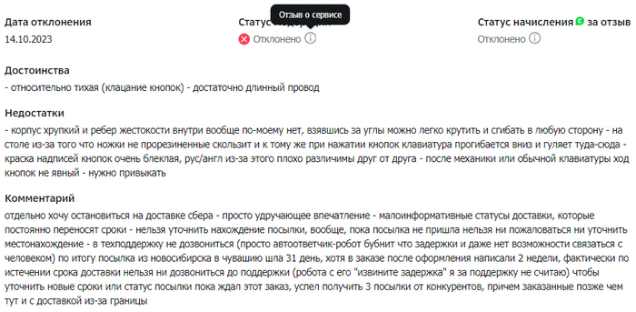 И вот сегодня мне наконец-то пришла посылка (доставка 3), считай через месяц ожидания, ну я же слегка вредный и дофига наивный, поэтому решил написать честный отзыв. Тем более сам мегамаркет на стартовой приложения настойчиво предлагал мне это сделать. В общем накатал (честно старался без мата) и отправил отзыв на модерацию.