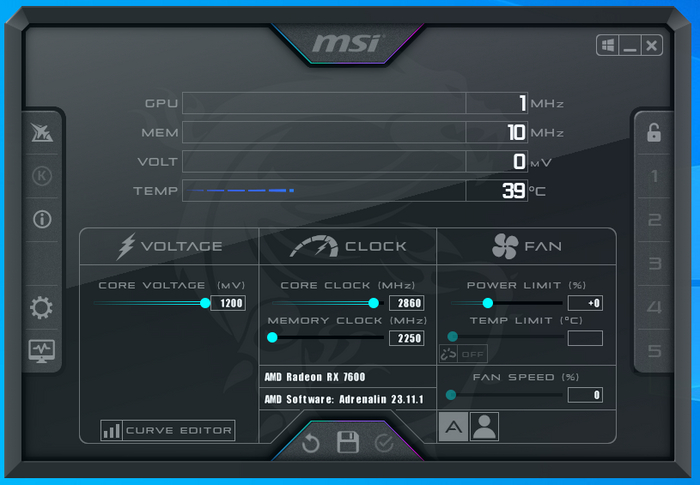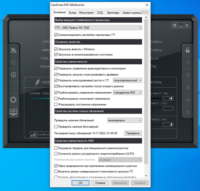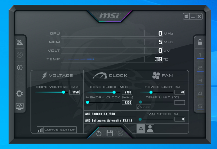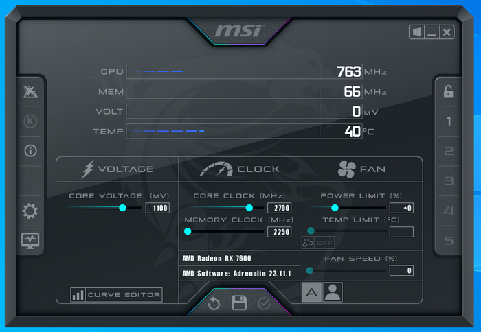 В родной оболочке драйвера AMD тоже можно настраивать андервольт, но он будет слетать после обновления драйвера, поэтому я использую MSI Afterburner.