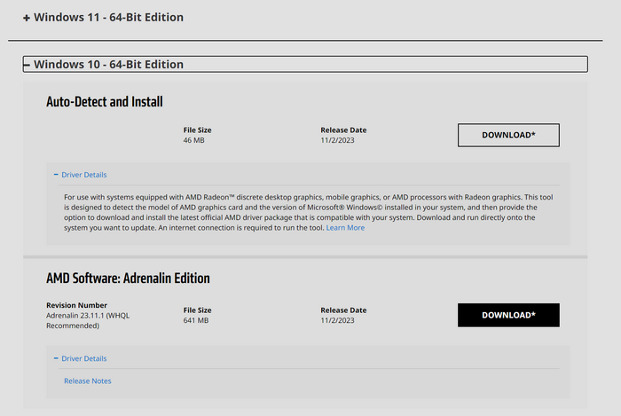 1.Загрузите и установите последние драйвера на свою видеокарту с сайта AMD https://www.amd.com/en/support, а также установите все программы из предварительного списка