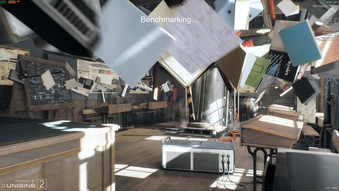 6. Прогоните бенчмарк 5-6 раз подряд, чтобы температуры и частота стабилизировались, на последнем прогоне обратите внимание на показатель частоты в левом верхнем углу, запишите какое примерно значение в среднем отображается, в моём случае было 2680-2700 МГц.