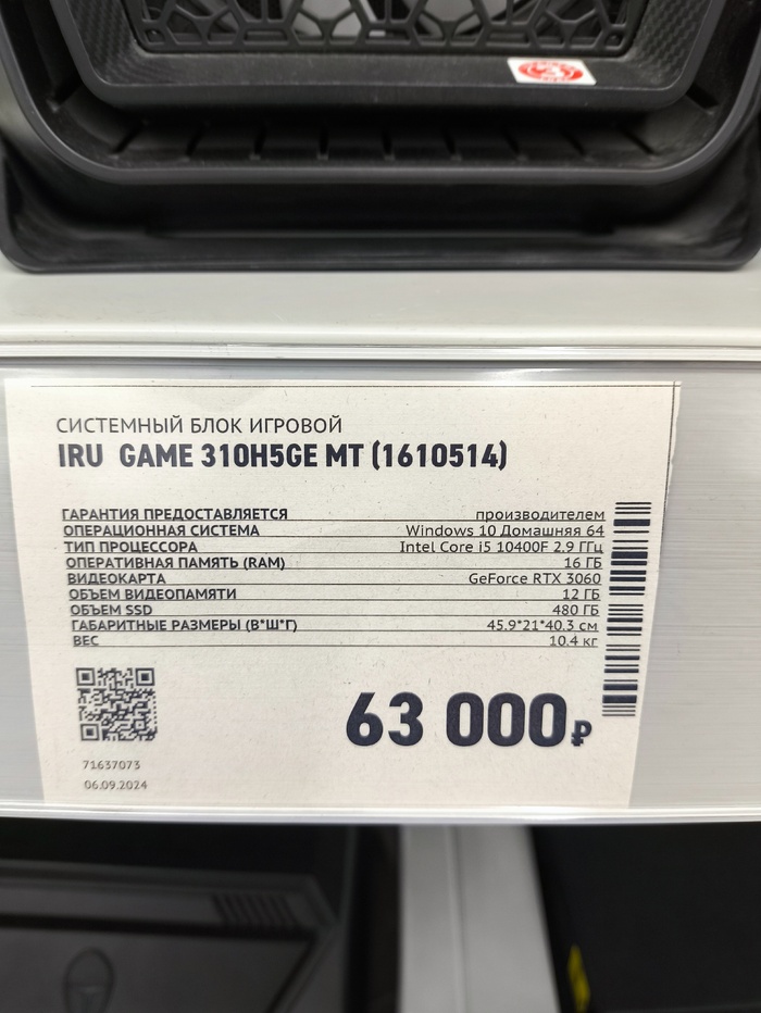 Цена за подобную конфигурацию (понятно, что там очень дешевая материнская плата, простенький блок питания и ссд) с гарантией 3 года вполне адекватная, сборка из б/у была бы не сильно дешевле, поэтому было принято решение приобрести компьютер, проблемой было то, что это распродажа остатков с витрин, и единственный экземпляр находился в другом городе на расстоянии 80км.