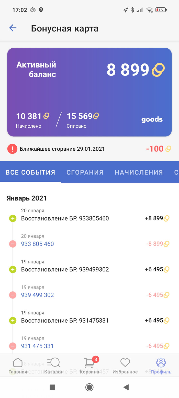 Но в остальных местах отображалось, что бонусов на счету 0. И воспользоваться ими при покупке я не мог.