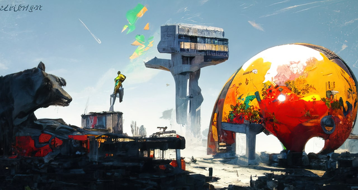 Привет! Не так давно я показывал уже схожую генерацию, но решил повторить с новыми знаниями в Disco Diffusion v4.1. Построенной на модели нейросети Diffusion + Clip, где одна модель генерирует арт(Diffusion), а вторая обращается к базе данных(CLIP).