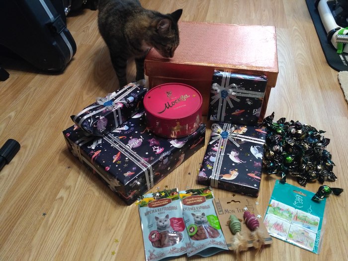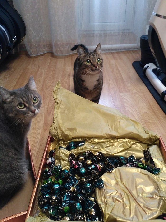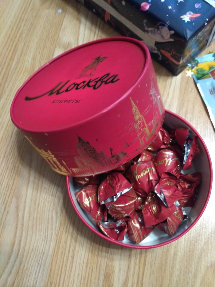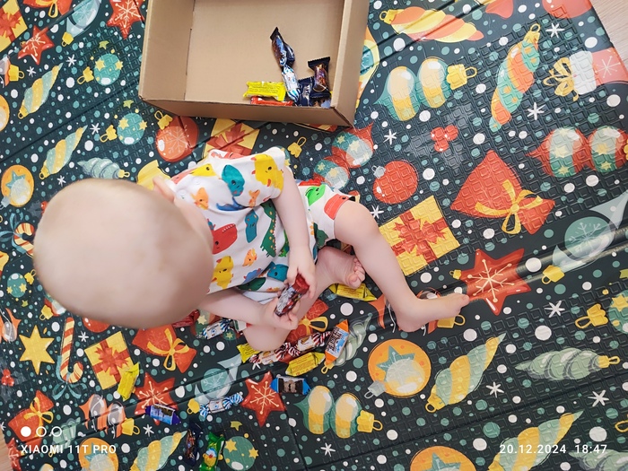 Конфеток в посылке гораздо больше, большая часть из них выступает в роли отвлекающего маневра, пока мама фоткает посылку