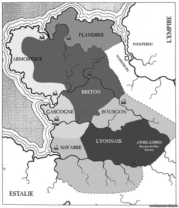 Изначально было двенадцать курфюрстов, но провинция Солланд была уничтожена вторжением орочьего воеводы Горбада Железного Когтя и теперь стала частью Виссенланда, а старая провинция Драквальд оказалась захвачена зверолюдами и другими тварями. Земли убитого правителя поделили Нордланд и Мидденланд, хотя до сих пор обсуждаются новые границы, и дело часто доходит до военных действий. Не так давно жадный император Дитер IV за солидную сумму дал сецессию городу Мариенбург, и последние сто лет крупный порт яро отстаивает свою независимость.