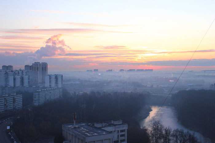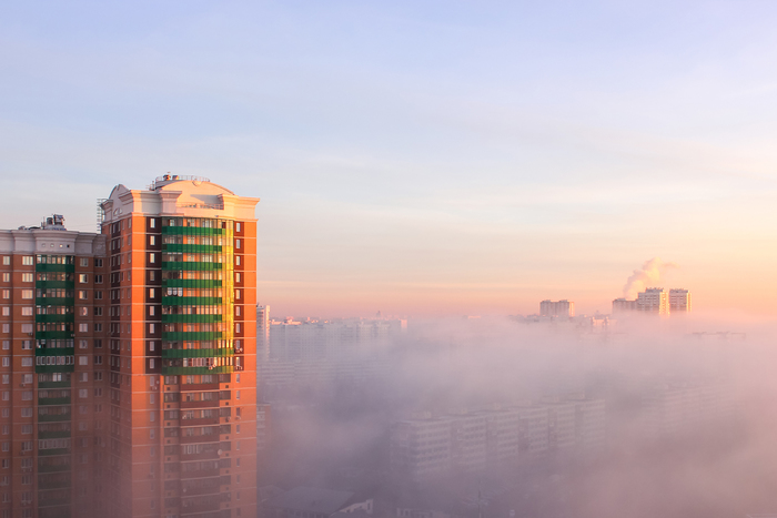 Вид с 20-го этажа на туман. Никогда такого сильного не видела, хочу поделиться с вами восторгом.