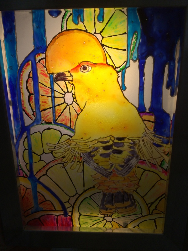 На этой фотографии для сравнения два варианта яйца. Левый сделала первым, тут вместо жилок пупырышки, проливка тёмного цвета, а драйбраш ярко-зелёный. В принципе, мне понравились и первый, и второй варианты.