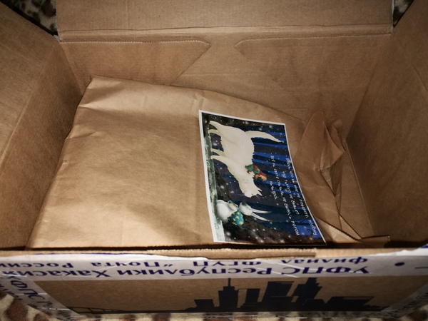 Дрожащими от восторга руками, я открываю и вижу заботливо обложеный газетами бумажный пакет и открытку сверху.