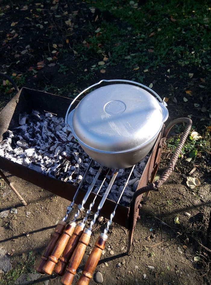 Закрываем казан, и ставим над углями, так же не допуская открытого огня.
