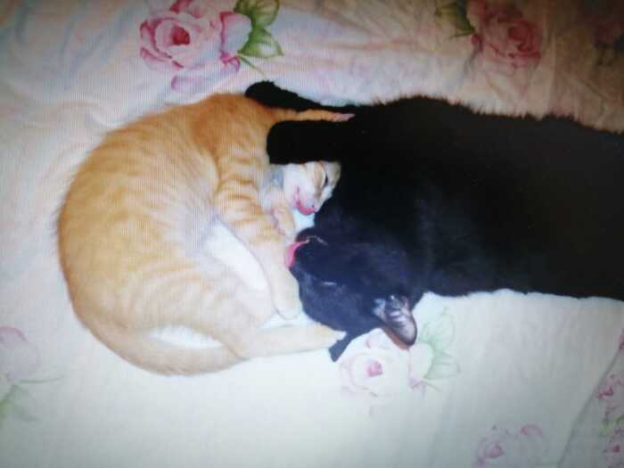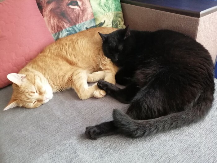 Мы боялись, что старший кот Черныш, который у нас уже был, не примет тебя и будет обижать. Но он усыновил тебя, вылизывал, охранял твой сон.