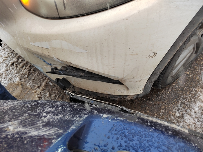 Я понимаю, что эти требования законны, но был очень удивлен суммой этой претензии. На момент ДТП сделал всего 3 фото, думал будет достаточно. Посмотрите на фото и скажите, как вы считаете, какова сумма ущерба белого мерседеса?