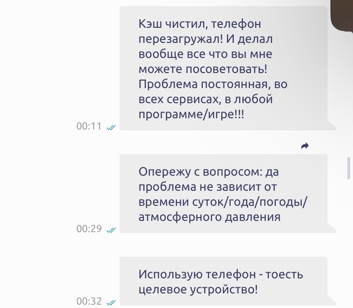 Проблем со связью, с моей стороны точно нет! Все что могут "виртуальные помощники" это взрывающие жопу советы: перезагрузите устройство/почистите кэш и прочую херню!