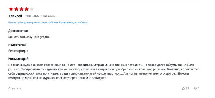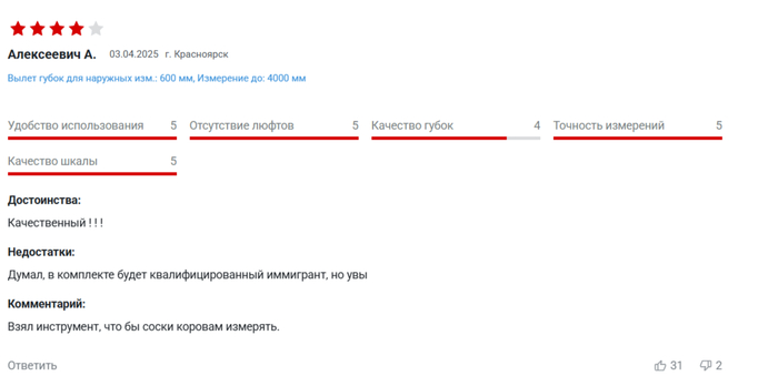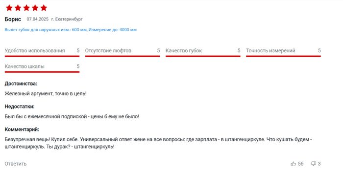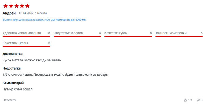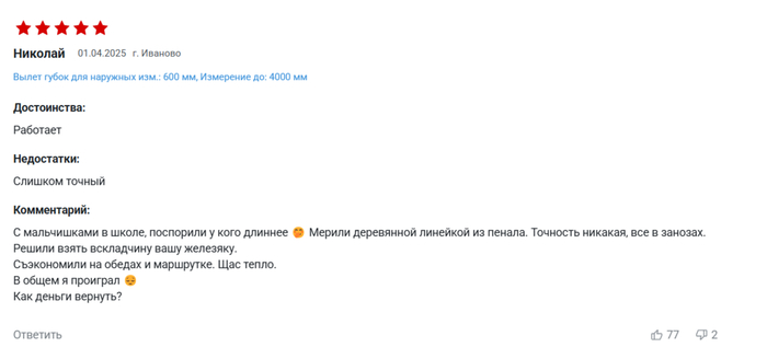 DedHottab71 А не купить ли мне Штангенциркуль 7 месяцев назад Нашёл на одном сайте вот такой товар Но самое интересное и занимательное оказалось, как всегда, в отзывах Показать полностью 10 Отзыв Штангенциркуль Длиннопост 2 1 Ещё 0