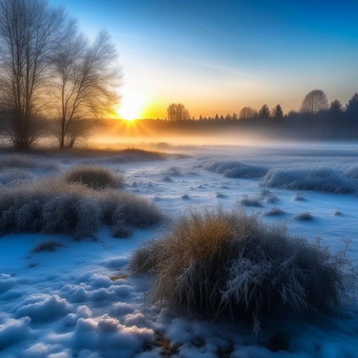 Поздняя осень время контрастов. Листья облетели, уснувшие деревья, на фоне восхода, они как напоминание о неизбежном. Еще зеленая трава, поседевшая от утреннего заморозка, а рядом зеркала покрытых тонким льдом луж.