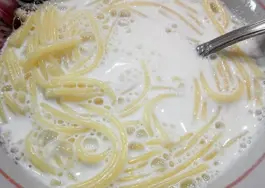 Молоко подниматься начало, вермишелька цвет золотистый приобрела. Прямо со сковороды и в молоко с маслом закипающее ее бухнул, и снова ложкой ее интенсивно, чтобы не слиплась. Чуток еще проварил. На зуб попробовал. Вроде готово. Густовато слегка, но на то она и каша. С плиты снял и на диване с газеткой растянулся, жду, когда семья проснется. Вижу, что уже носами водят, значит не долго осталось.