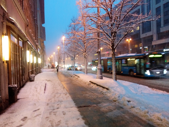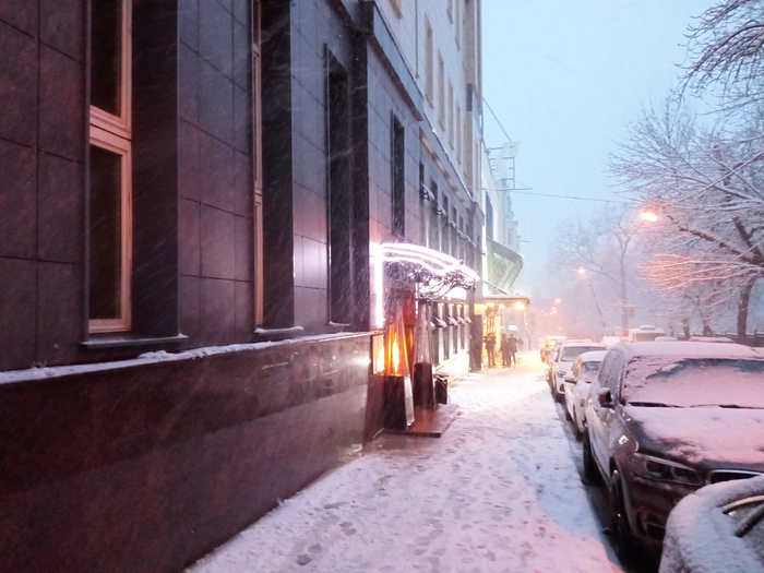 немного снега и впервые сцена на улице,