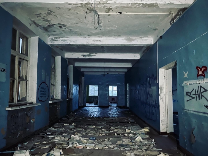 Хочу показать ее и с другой стороны: заброшенная школа, которая сейчас выглядит как арт-объект, а из ее окон видно волны и бескрайнюю меланхолию.