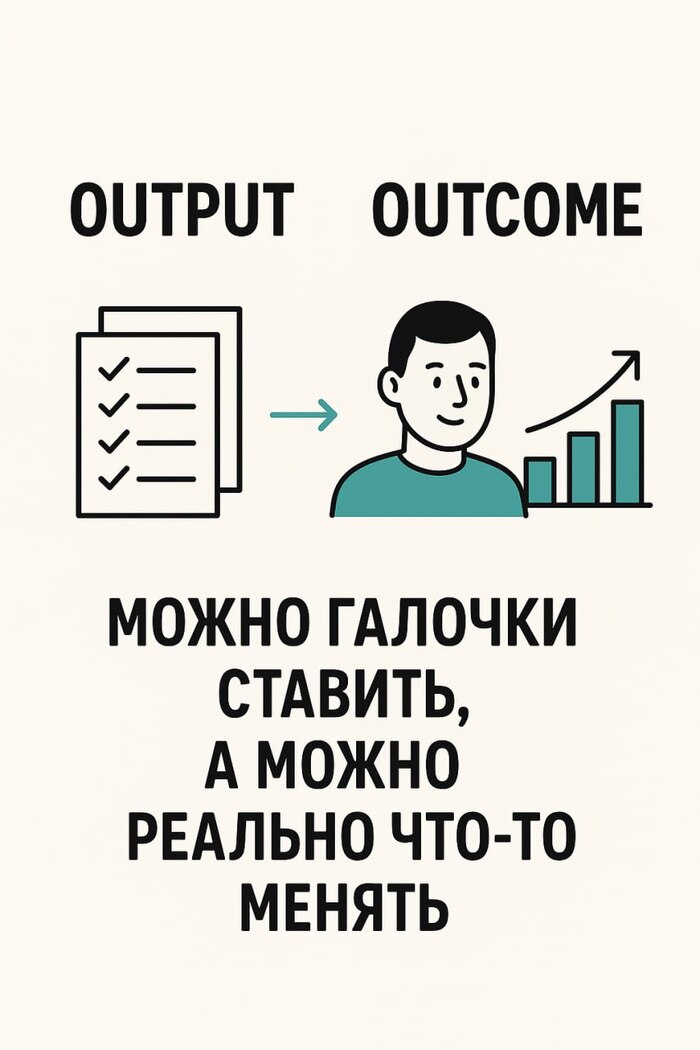 ✅ Output - мы что-то сделали: внедрили практику, добавили артефакт, изменили правила приоритезации.