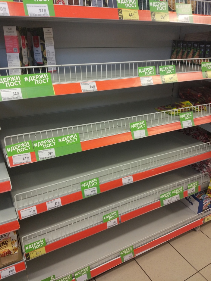 Dem85 Просто все держат пост!! 5 лет назад Зашел в одну очень известную "рыжию" сеть и наблюдали сию картину. Показать полностью 1 [моё] Запас Крупа Ещё 0