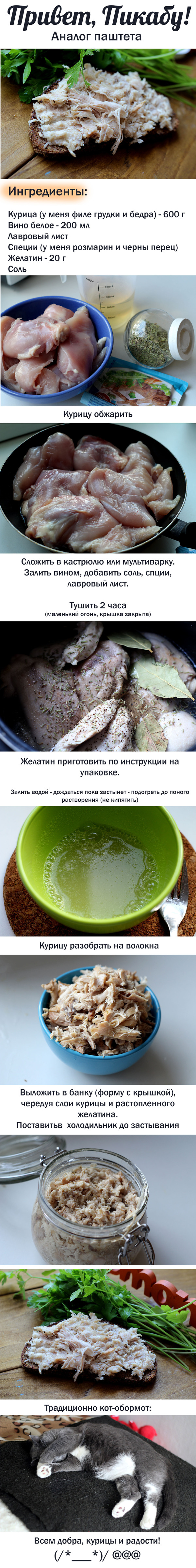 179 DemonBilly 9 лет назад Рийет из курицы с белыми вином Показать полностью 1 [моё] Кулинария Еда Рецепт Кот Длиннопост