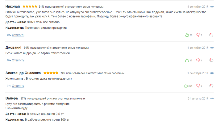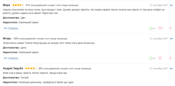 DemonDem Надо брать!!! 8 лет назад Искал на одном известном сайте телевизор на кухню. Наткнулся на вот такой интересный вариант. Особенно доставили комментарии. А ещё понравилось, что при покупке телевизора предоставляется скидка на сетевой фильтр стоимостью 100 грн)))З.Ы. Пост первый, пинайте) Показать полностью 5 Телевизор Цены Покупка Наглость Первый длиннопост Длиннопост
