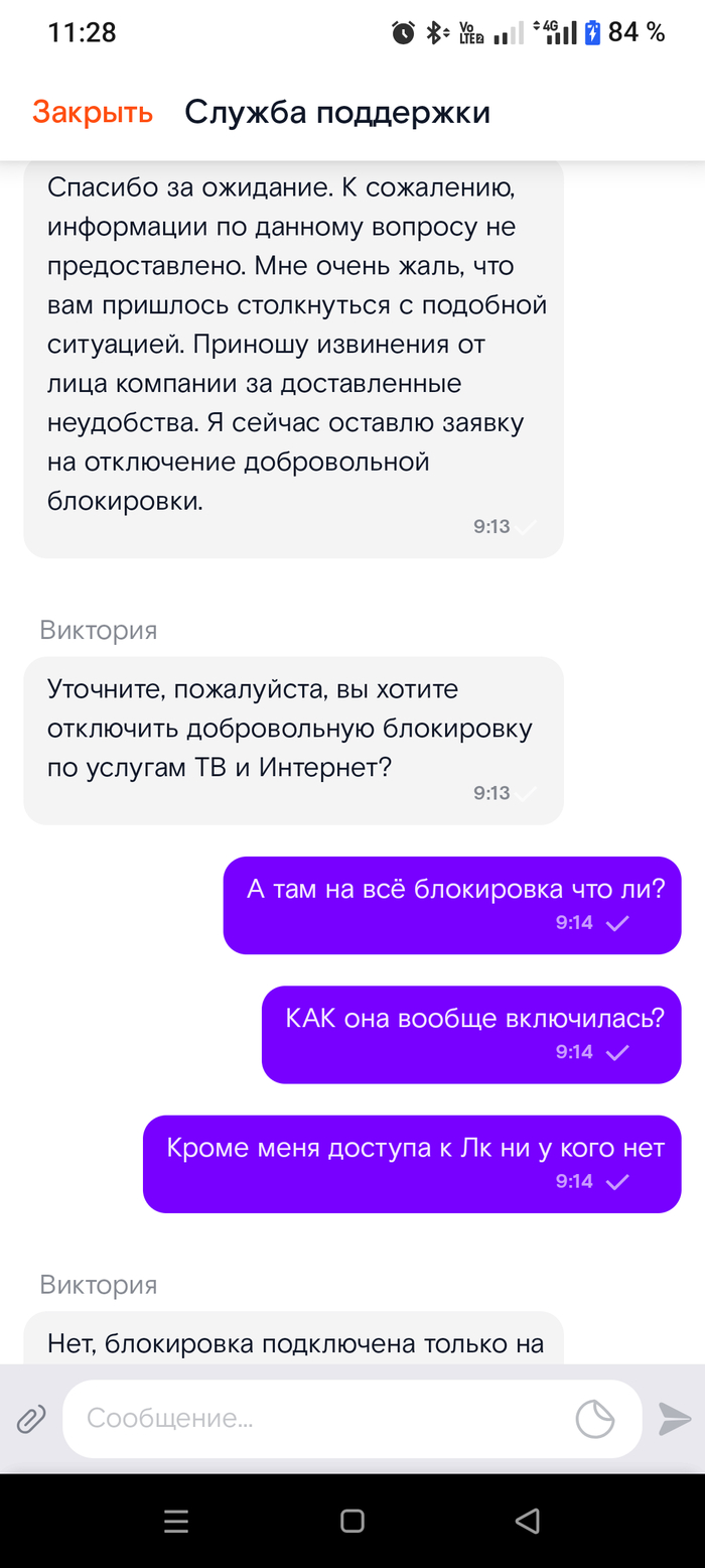 Сегодня утром получаю такую смс.сам не заходил в лк с прошлого месяца.оплатил всё вовремя.деньги сняли как положенно.доступа к лк нет ни у кого кроме меня.начинаю писать оператору.почти год с этим оператором,выбора нет,частный сектор,Gpon подключен.всё было нормально....а сегодня такой сюрприз.тёща сказала что ещё вчера по тв писали периодически что нет сети.хотя сегодня утром проверил что тв работает.