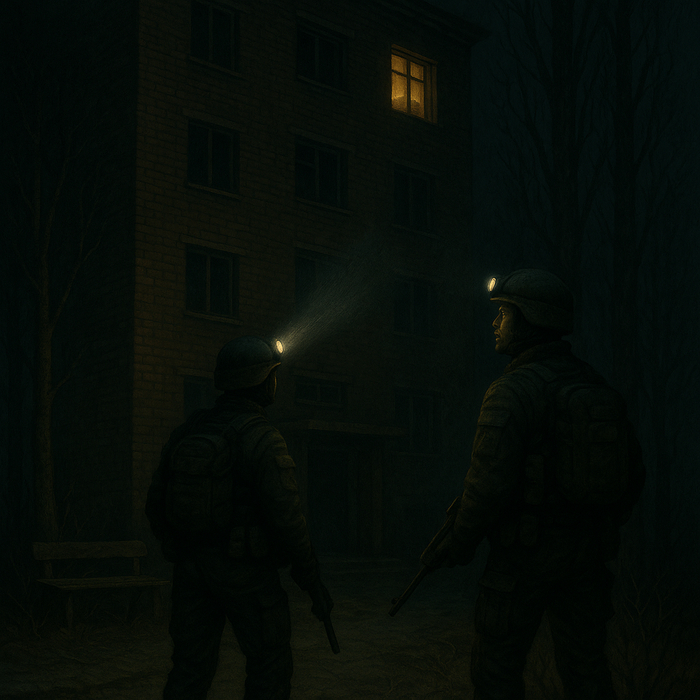 Ночь была беззвёздной и безлунной - особенно тёмной в этом месте. Свет наших шлемных фонарей вырывал из тьмы стены стандартного пятиэтажного дома из красного кирпича, постройки 60-х годов прошлого века, прозванного в народе "хрущёвкой". Остатки сгнившей лавочки у подъезда, потрескавшийся асфальт, забитый землёй и сухими ветками, мёртвые тополя - вся эта обстановка напоминала мне о месте, где прошло моё детство. Только тогда всё это было живым, чистым, ярким.