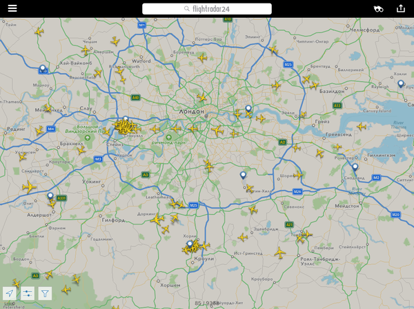 Нет, курильщики тут не причем - просто верхний скрин - как выглядит стандартная плотная загрузка лондонского неба и окрестностей (навскидку бортов 70 одномоментно) и чистое лондонское небо. Аэропорт Хитроу закрыт, никого не принимают - в небе только один-единственный самолетик. Если я правильно понимаю - по нему калибруют наземное радарное оборудование. Любопытно, во сколько обходится такая профилактика - закрыть часов на 6 самый крупный аэропорт Европы...