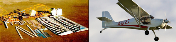 Вот так вот он выглядит. Слева - в момент покупки, справа - в летном состоянии. Говоря другими словами - желающий может получать удовольствие не просто от полетов на своем собственном самолете, но еще и много раньше, еще до самих полетов - собственноручно собирая его.