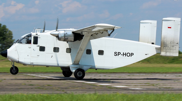 "Летающая обувная коробка", Short Sc.7 Skyvan, на самом деле это британский самолет, но сейчас у него польские опознавательные знаки. Очень занятная конструкция - англичане во главу угла поставили прагматизм и рационализм в ущерб всему остальному. Но не напрасно еще в тридцатых годах прошлого века в авиакругах родилась пословица - "Если самолет красивый, значит он будет хорошо летать". Статистика неумолима - по данным Википедии с из 153 выпущенных разбилось 42 шт.